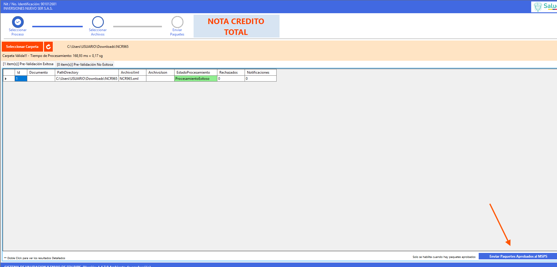 Para la generación de los RIPS de las notas crédito ante el Mecanismo de Validación del Ministerio de Salud, podrá descargar los archivos correspondientes a través de la siguiente ruta: